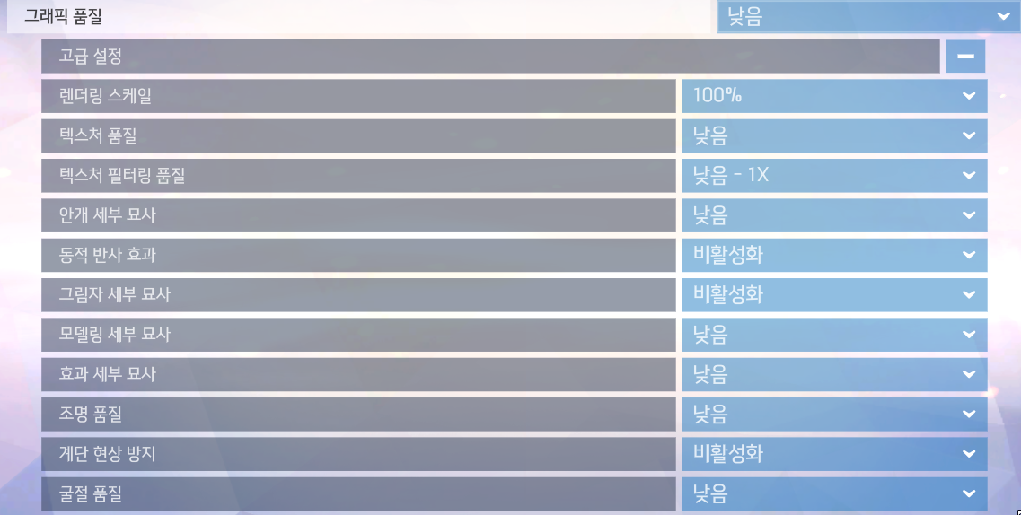 업데이트하면 간혹 내 그래픽카드 설정 상태가 바뀌는 경우가 있습니다. 내 그래픽 카드의 능력보다 현저하게 높게 세팅이 되어 있다면 당연히 성능 저하가 생기게 되고 화면이 끊기게 됩니다.