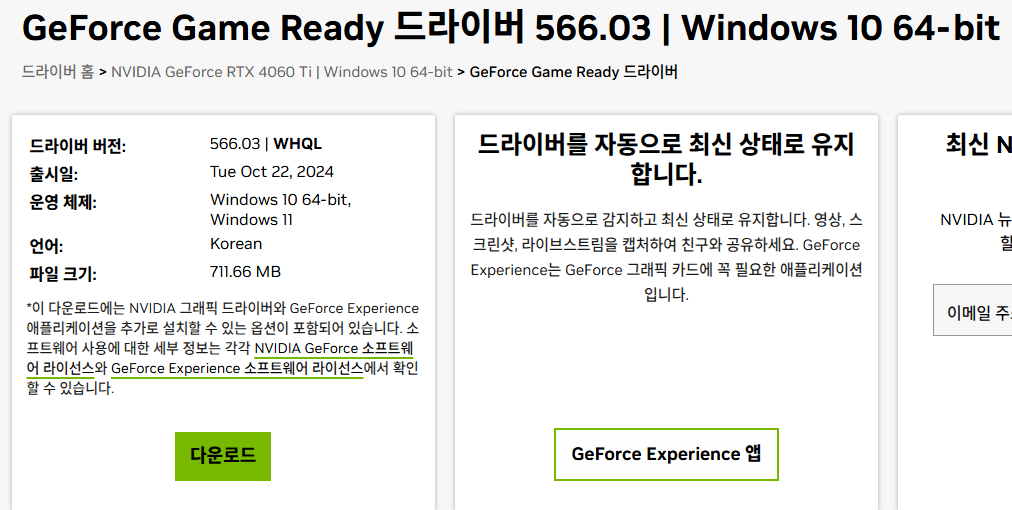 - 보통 1~2개월마다 새로운 드라이버가 출시되므로, 최신 드라이버를 확인하는 것이 좋습니다.