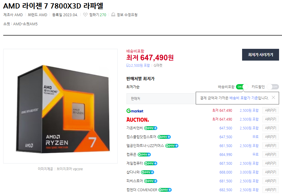 라이젠7 7800x3d 성능 및 가격 분석